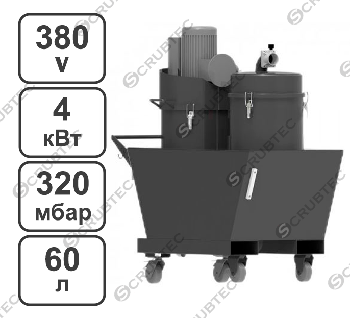 корзина/бак под стружку: ~60 л. - Фильтрация: звездообразный полиэстер + фибра, эффективность до ~1 мкм по сухой фазе; нейлоновая сетка/корзина по жидкой фазе.