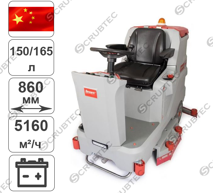 Аккумуляторная поломоечная машина с местом оператора Bennett Patrol P150-86d PRO (с литиевым АКБ 210 а/ч)