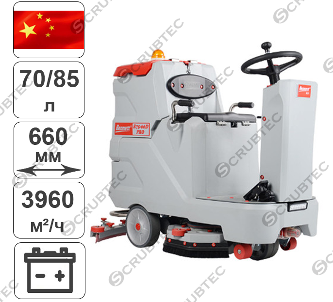 - Тип: аккумуляторная поломоечная машина с местом оператора (ride-on)