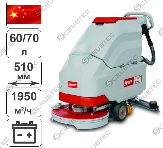 Аккумуляторная поломоечная машина с приводом на колёса Bennett Clever C510bt Basic (с литиевым АКБ 105 а/ч)