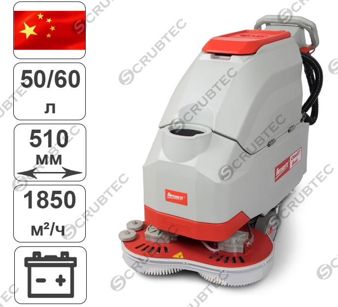 Аккумуляторная поломоечная машина с приводом на колёса Bennett Smart S510bt PRO (с литиевым АКБ 60 а/ч)