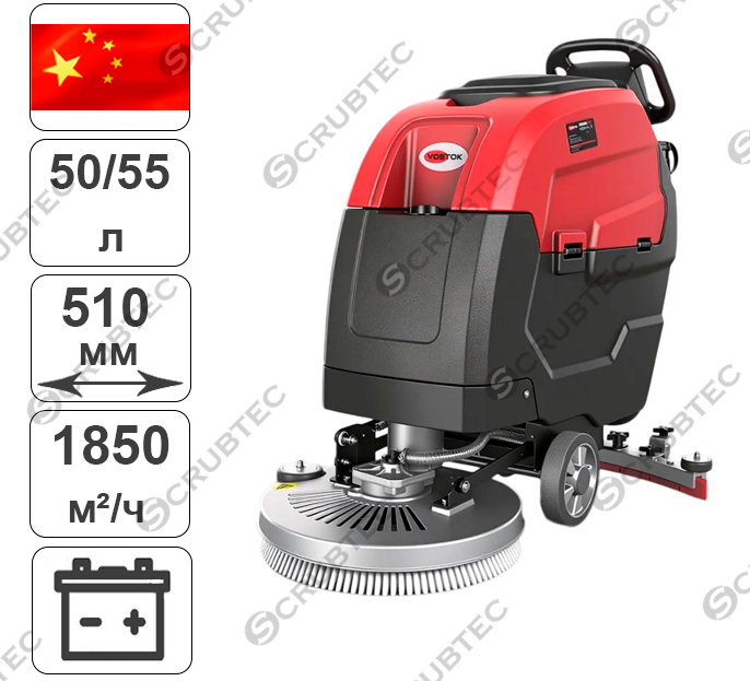 Аккумуляторная поломоечная машина Vostok BA55 с литиевой АКБ 87 А·ч: