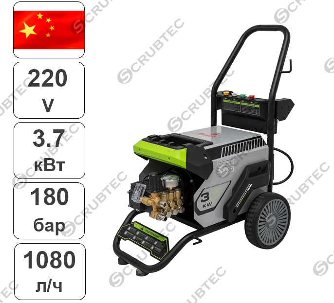 - Компоненты промышленного качества — насос высокого давления с латунной головкой, трёхпоршневой механизм, крупный двигатель, рама с усиленной конструкцией.