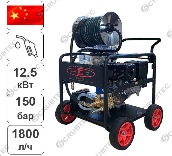 BXS3015 — автономный (бензиновый) аппарат высокого давления без нагрева воды, рассчитанный на интенсивную очистку твёрдых поверхностей и техники в местах без стабильной электросети. По данным поставщиков, это исполнение часто идёт под брендом TOR и относится к каналопромывочному/очистному классу: 150 бар, 30 л/мин (≈ 1800 л/ч), двигатель ~17 л.с., мобильная тележка с барабаном и 30-метровым шлангом. Такой набор параметров закрывает выездные мойки спецтехники, промывку площадок, очистку ограждений, фасадов, колодцев и каналопроводов, а также подготовку поверхностей перед ремонтом/покраской.