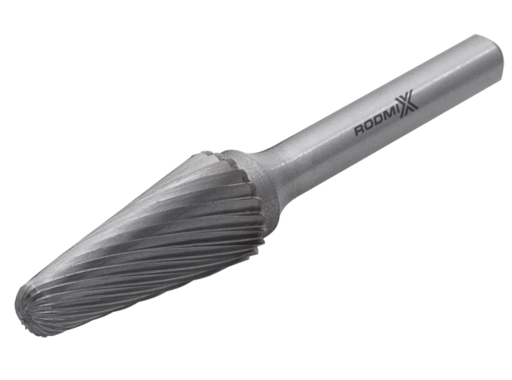 Борфреза сфероконическая типа L с одинарной насечкой — это твердосплавный вращающийся режущий инструмент, рабочая часть которого имеет форму конуса с закругленной вершиной. Инструмент применяется с прямыми шлифовальными машинами на электрическом или пневматическом приводе, а также с граверами, бормашинами и подвесными дрелями. Ключевая специализация — обработка сложных контуров, стыков, пазов и труднодоступных мест, где требуется сочетание конической формы для доступа и радиусной вершины для плавных переходов.