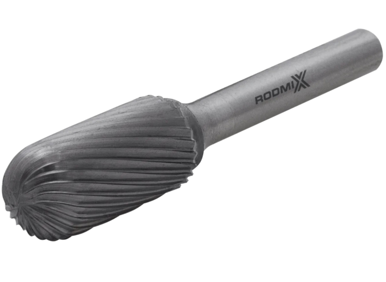 Борфреза сфероцилиндрическая типа C с одинарной насечкой — это твердосплавный фрезерный инструмент, рабочая часть которого представляет собой цилиндр с полусферическим (сферическим) торцом. Эта форма объединяет возможности цилиндрической и шарообразной фрезы. Инструмент предназначен для высокооборотной обработки металлов при помощи УШМ, прямых шлифмашин и пневмоинструмента.