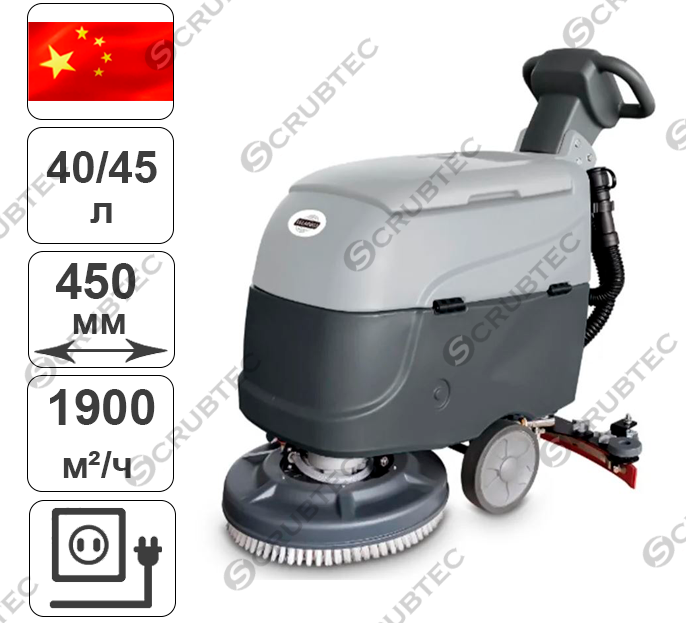 - Тип: поломоечная машина пешеходная, сетевая 230 В, дисковая.