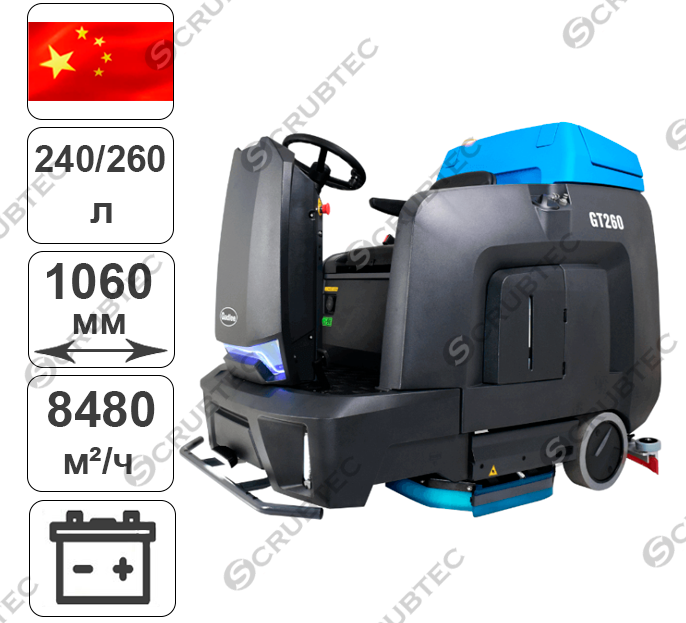 - По людям: 1× GT260 B106 ≈ 12–25 операторам с «мокрой шваброй» на площадях 5–15 тыс. м² (см. расчёт выше).